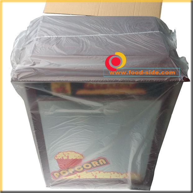 Дверцы аппарата попкорн защищены защитной пленкой, емкость для сбора отходов и поддон для подогрева готового попкорна тоже. Верхняя крышка и боковые грани защищены коричневовй пленкой. Пленку можно снять и в каждый сезон клеить новую, освежая внешний вид аппарата для попкорна.