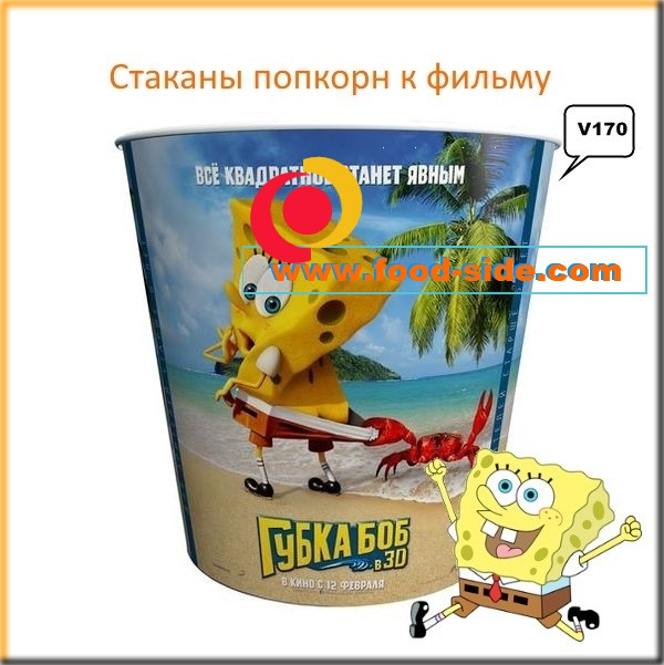 Новинка кинопроката мультфильм «Губка Боб». Упаковка для попкорна к мультфильму «Губка Боб» V170. Бумажный стакан для попкорна к мультфильму «Губка Боб» V170 с изображением героев мультфильма. Объём одного бумажного стакана к фильму «Губка Боб» - 5,0 литров (V170). Количество бумажных стаканов V170 в упаковке к мультфильму «Губка Боб» - 150 шт в ящике. Производитель бумажных стаканов для попкорна к мультфильму «Губка Боб» V170 - Россия. У нас Вы можете купить премьерные стаканы для попкорна к мультфильму «Губка Боб» V170 в количестве от 1-ой шт. по низкой цене со склада в Украине. Узнать о новых поступлениях стаканов для попкорна к премьерам фильмов Вы можете в разделе Новости.