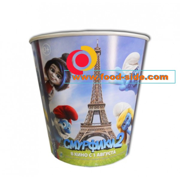 Бумажный стакан для попкорна "Смурфики 2" V85. Объём бумажного стакана к мультфильму Смурфики 2 - 2,5 литра (85 унций). Продажа премьерной упаковки попкорн Смурфики 2 осуществляется в коробке: 150 шт. Производитель стаканов для попкорна к мультфильму Смурфики 2 V85: Россия.